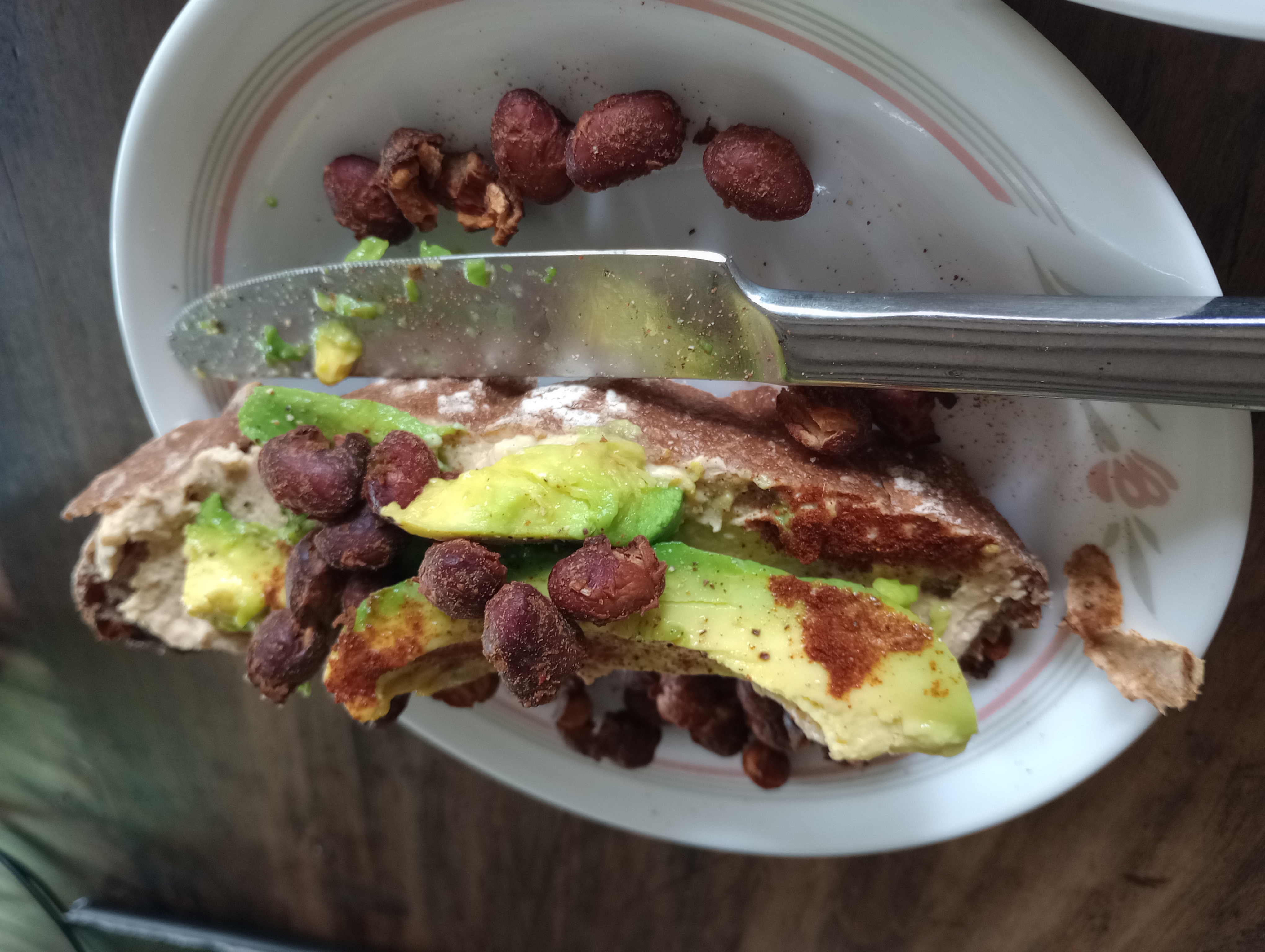 Hummus and bread is a very nutritions combination that is easy to make. Toast the bread and spread the hummus, that's it. Add kimchi for a very complete and balanced meal with grains, legumes, seeds and fermented vegetables.