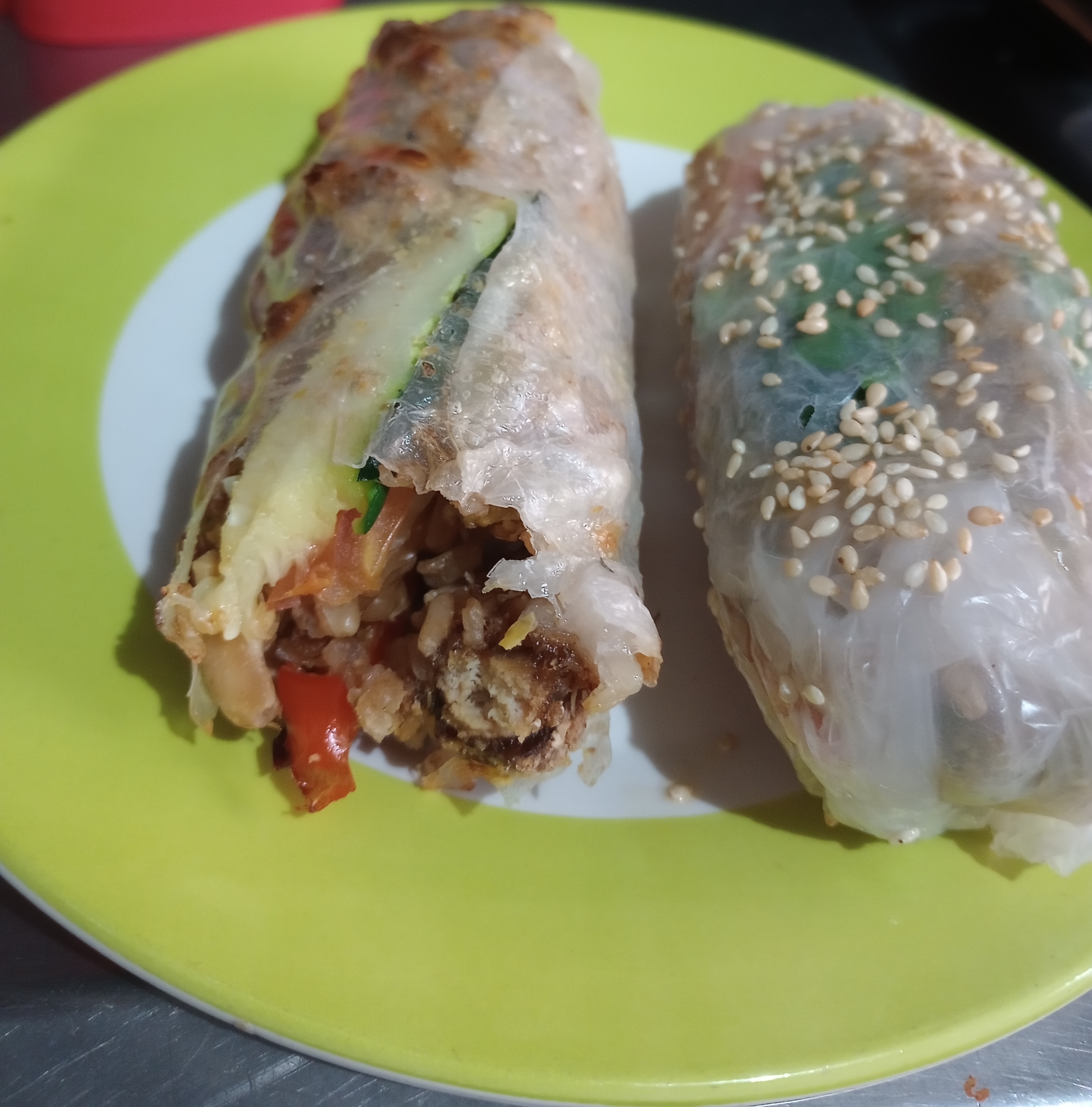 Mexican rice/corn, black beans, red onion, bell pepper, cilantro, parsley, lemon, avocado, cashew-nutritional yeast "cheese" or yogurt. As bowl or wrap