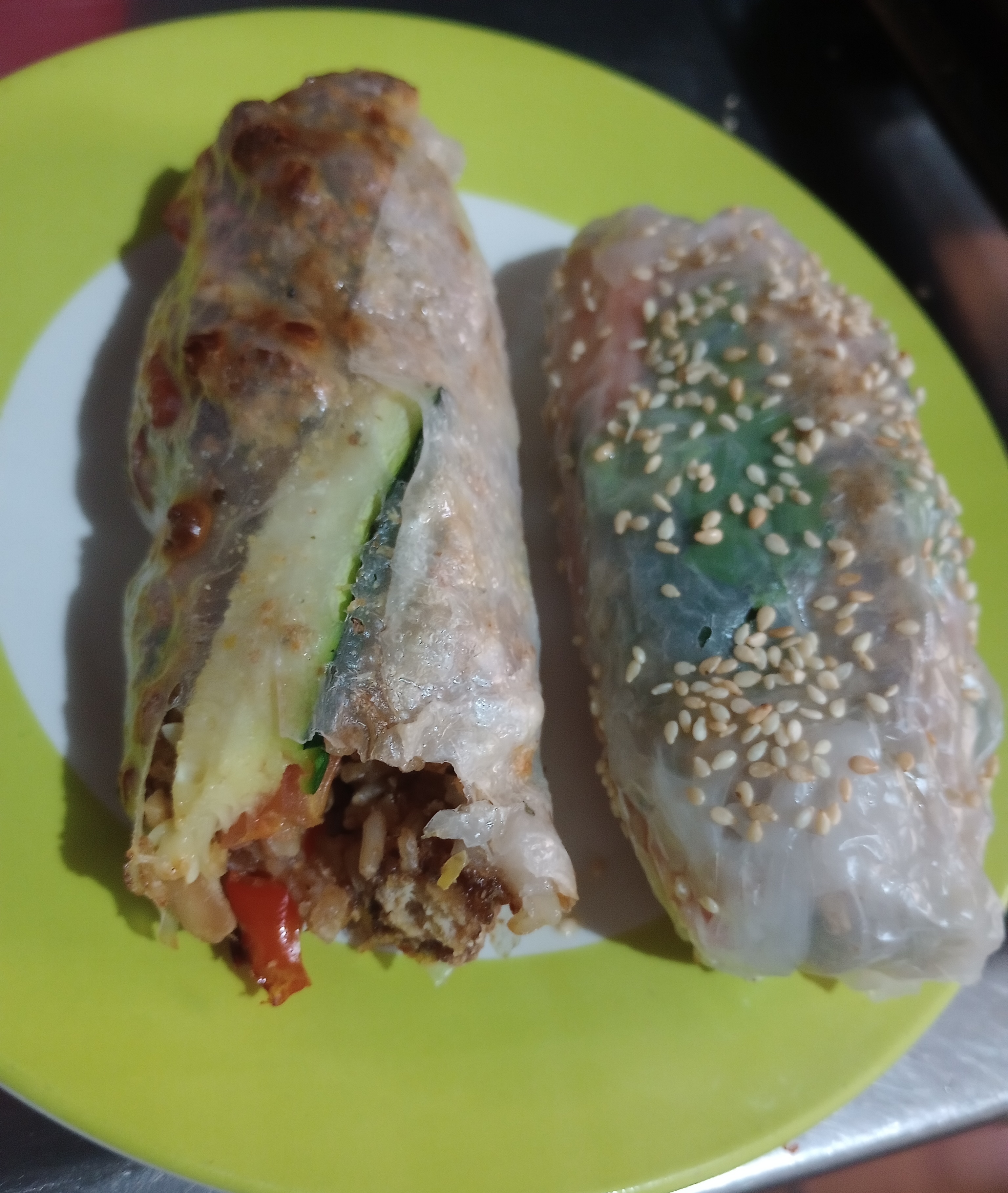Korean kimchi, sweet potato, sesame seeds, garlic-tahini-lemon-gochugaru/paprika tofu/seitan #